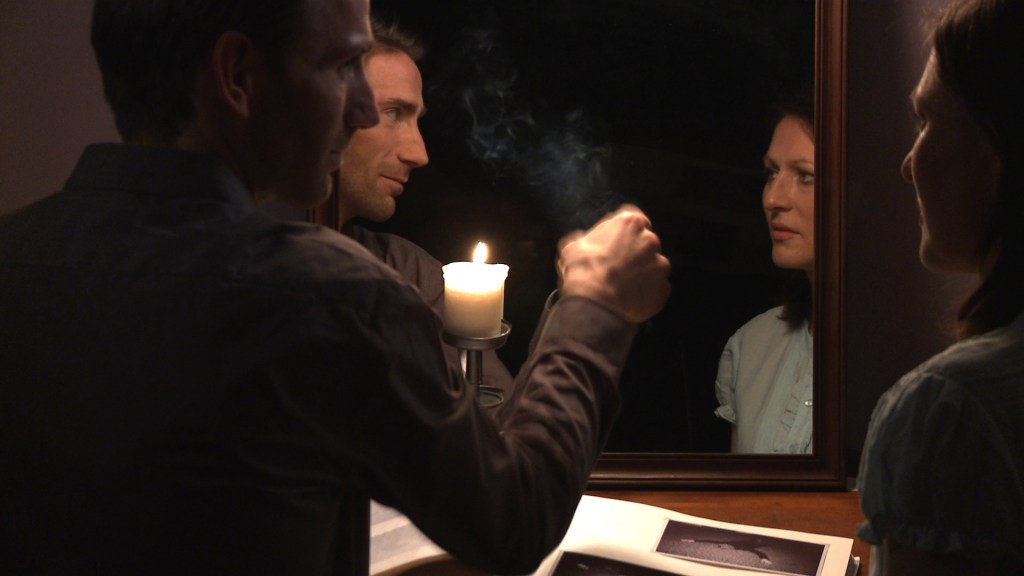 According to traditional ghost lore, phantoms may be there whether one can see them or not. Following this logic, the woman suspects that there are times when the spirits are present but don’t clearly reveal themselves. She lives her life seeking out signs of their presence and assuming them to always be nearby. This expectation of constant observation leads to a paranoia which is then deflected onto and processed through her relationship with her husband.